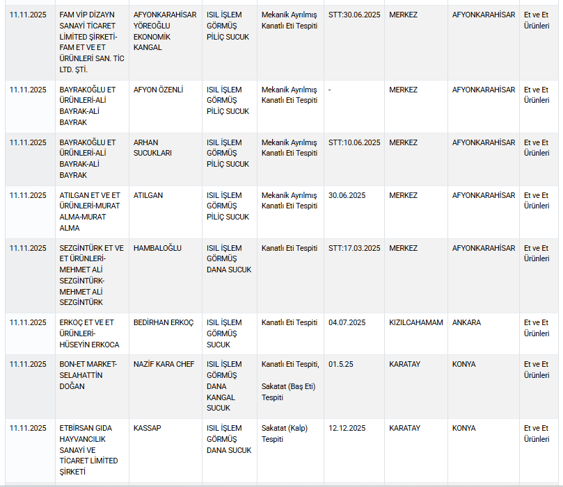 Afyonkarahisar, Konya ve İzmir merkezli bazı üreticilerin sucuk ve etli ürünlerde mekanik ayrılmış kanatlı eti veya sakatat kullandığı tespit edildi.
